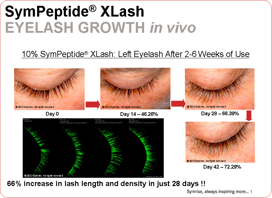 - XLash Peptide se applicato sulle ciglia aumenta il numero di peli in fase Anagen (fase della crescita) e riduce il numero di peli in fase Telogen (fase della non crescita).
