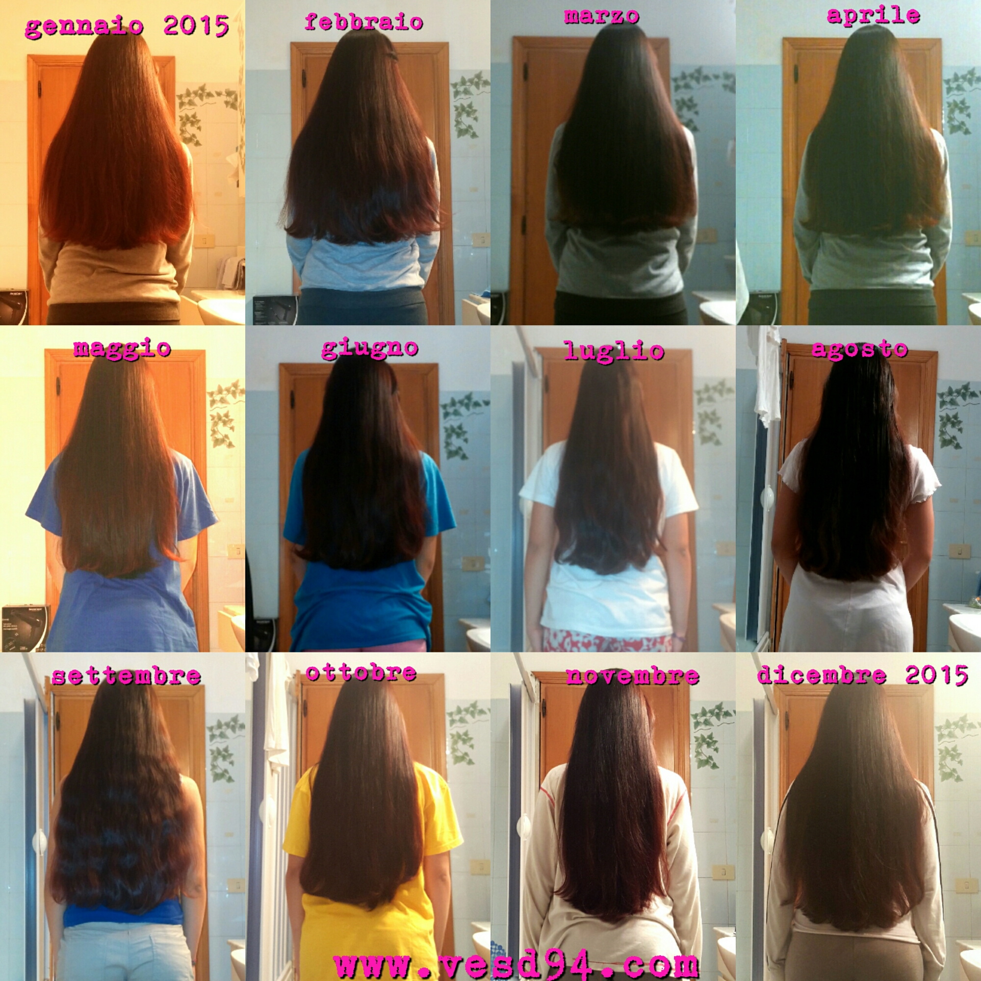 Siccome negli ultimi due anni e mezzo i risultati positivi sono stati evidenti, e non sono io a dirlo, mi è sembrato il caso di continuare in maniera trasparente a tener conto dei processi di miglioramento, tant’è che ogni mese del 2015 ho scattato dalla stessa angolazione nella stessa stanza (il bagno) una foto alla mia chioma, per monitorare il processo, in vista della composizione di un articolo del genere alla fine. In questo modo ho valutato concretamente il cambiamento della forma e la crescita.
