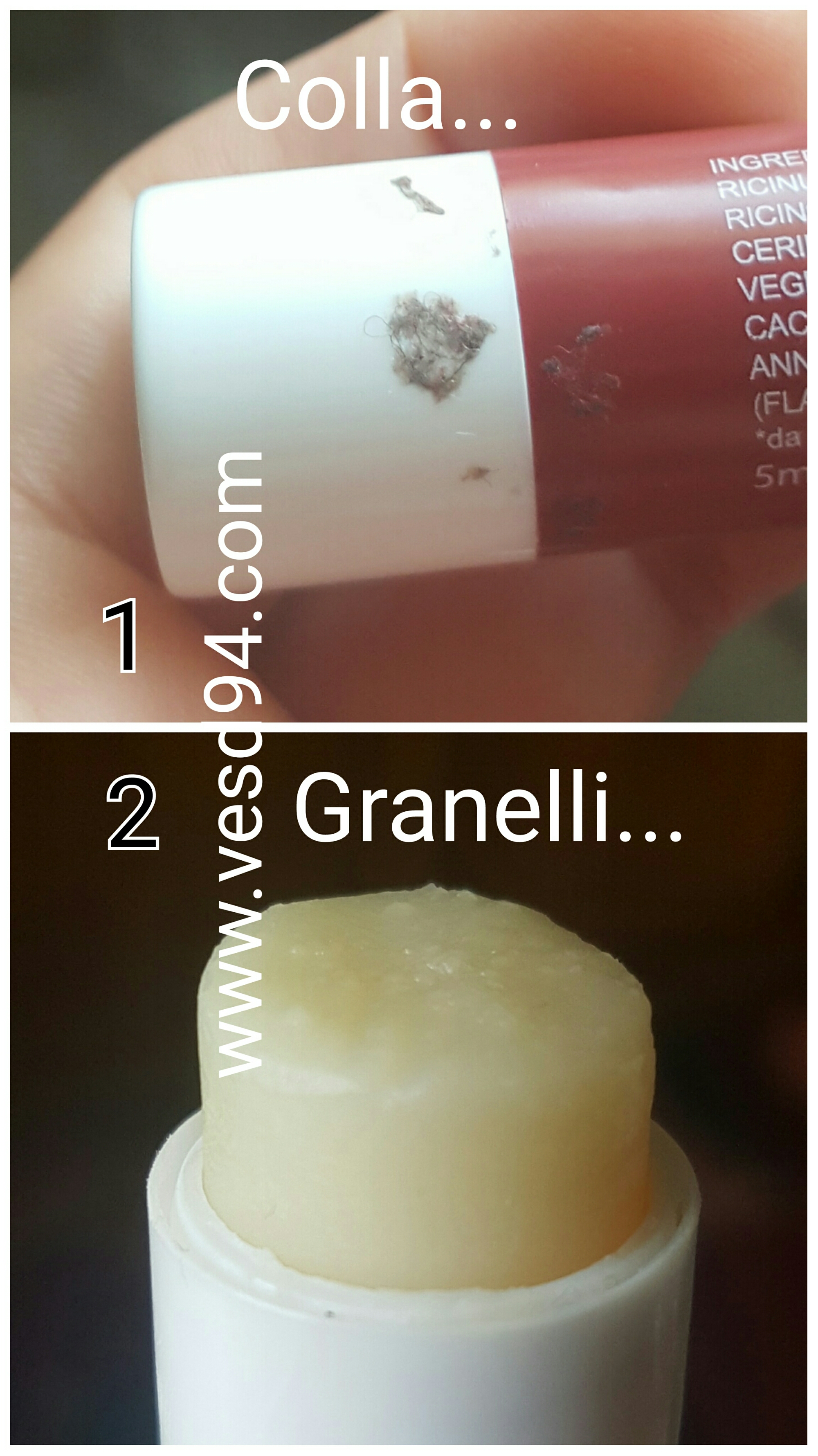 - Alcuni balsamini rimangono granulosi anche dopo molto tempo dall’uso, lasciando quindi i pallini di burrocacao quando vengono distribuiti sulla pelle delle labbra. Non si “allisciano”.